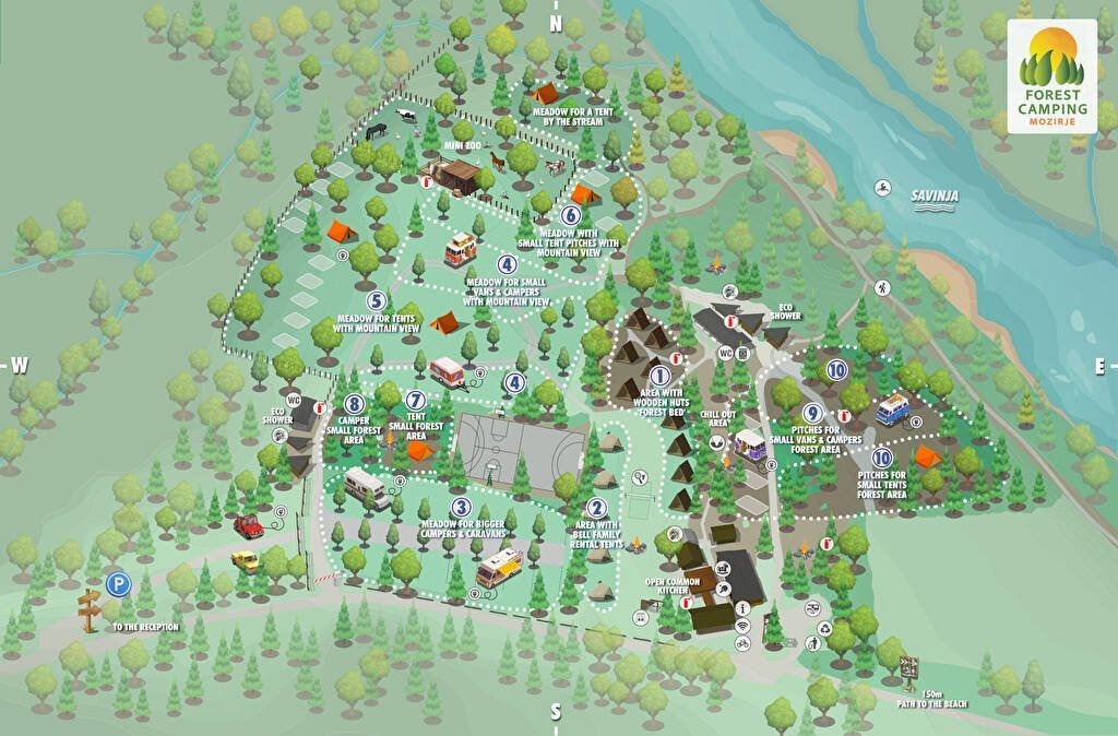 Forest Camping Mozirje biedt een unieke en milieuvriendelijke kampeerervaring midden in de natuur van Slovenië. Gelegen aan de rivier de Savinja en omringd door de Sloveense Alpen, is deze camping ideaal voor natuurliefhebbers die op zoek zijn naar ontspanning en avontuur. Het bosrijke terrein, met uitzicht op bergen en platteland, biedt kampeerplaatsen in diverse vormen en groottes, evenals comfortabele houten boshutten en ingerichte tenten. Met de rivier op loopafstand kunnen gasten genieten van verfrissende ochtenden in kristalhelder water, en de camping zelf biedt uitstekende faciliteiten, waaronder een ecologische douchegelegenheid en gratis wifi.